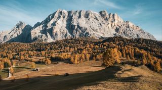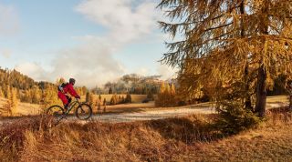 Wahrscheinlich der ikonischste Ort im Gadertal und auch einer der reichsten in der Geschichte. Die Wallfahrtskirche La Crusc (2.045 m) stammt aus dem Jahr 1484 und befindet sich zusammen mit der gleichnamigen Schutzhütte unterhalb der imposanten Mauern von Kreuzkofel. Von unserem Verleih in San Cassiano aus kannst du den Ort über verschiedene Wege und Forststraßen erreichen, je nach Kondition und Fahrkönnen. Das Gleiche gilt für die Abfahrt, bei der du dich für einen einfachen, familientauglichen Waldweg entscheiden kannst. Oder für zwei anspruchsvollere Varianten, die mit Wurzeln und hervorstehenden Felsen deine Fahrkünste auf die Probe stellen.